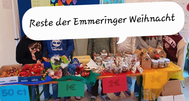 In der ersten Pause verkauften Kinder aus der Klasse 4c noch Dinge, die bei der Emmeringer Weihnacht am Stand des Fördervereins und Elternbeirats noch keinen Abnehmer gefunden hatten.