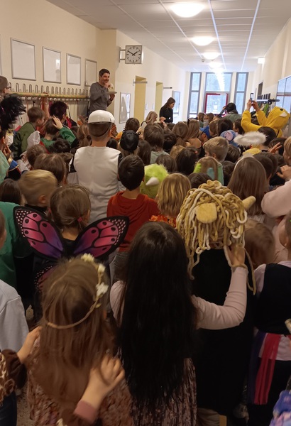 Am 21.11.25 fand der bundesweite Vorlesetag statt. Der Tag begann in der Schulturnhalle, wo Herr Sölch "Oskar und der sehr hungrige Drache" vorlas. In der vierten Stunde lasen 34 Eltern und Großeltern zusammen mit ein paar Lehrkräften und unserer JaS kleinen Gruppen aus einem Buch ihrer Wahl vor. Die Kinder waren begeistert. Wir möchten uns ganz herzlich bei allen Vorleserinnen und Vorlesern bedanken, die diese Aktion ermöglicht haben!