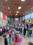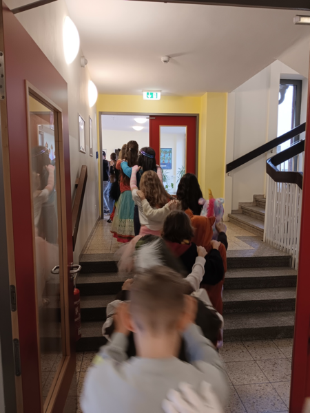 Einen Tag später zog dann die Polonaise aus Kindern und Lehrkräften von den Klassenzimmern in die Schulturnhalle und dort wurde ordentlich getanzt. Außerdem gab es leckere Quarkbällchen.