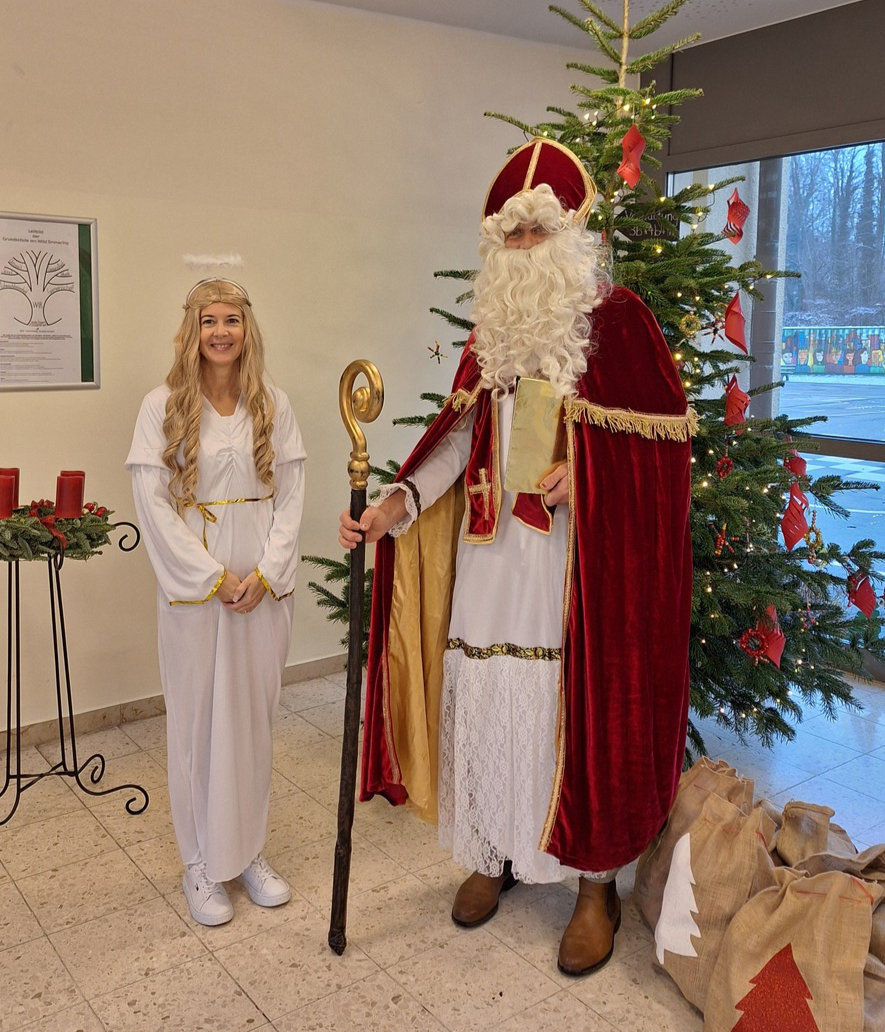 Am 5.Dezember kam der Nikolaus noch mal in Begleitung eines himmlischen Engels, um den Kindern Schokonikoläuse und Mandarinen in die Klassen zu bringen. Ein ganz herzliches Dankeschön an unseren Förderverein und Elternbeirat, dass sie den Nikolaus auch dieses Jahr wieder tatkräftig unterstützt haben!