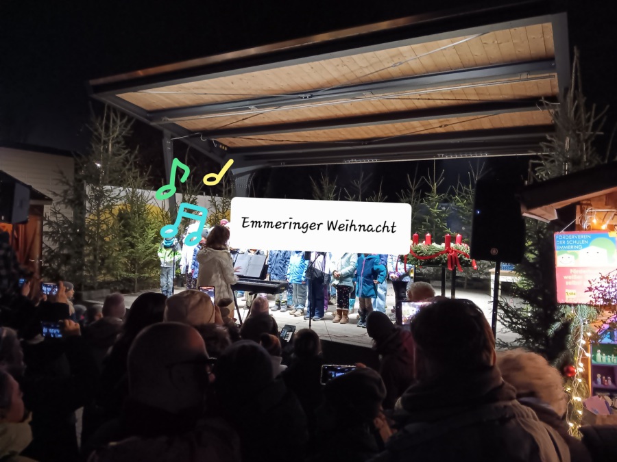 Wie im letzten Jahr sang unser Schulchor wieder bei der Emmeringer Weihnacht direkt nach der offiziellen Eröffnung am Freitag, den 12.12.25. Sie begeisterten mit verschiedenen weihnachtlichen Liedern.